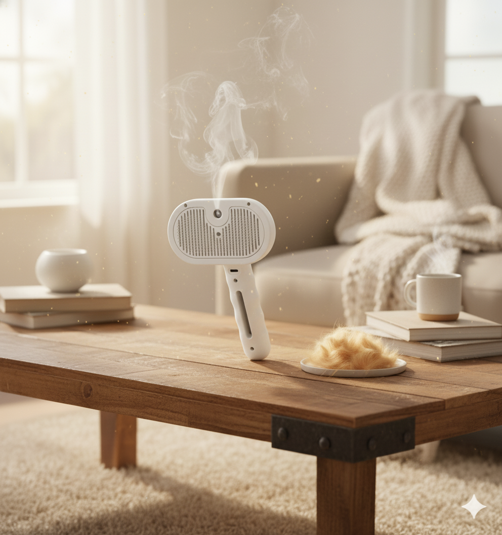 Brosse vapeur 4 en 1 écologique, toilettages et massages pour animaux de compagnie, autonettoyante avec réservoir d'eau